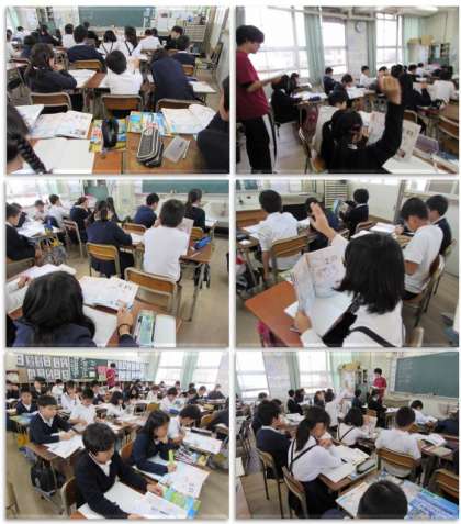 5年生の社会科の学習です。日本の輸出と輸入の学習です。1980年と2012年の資料から、輸出品・輸入品の変化や、金額の変化について調べ、考えたことを発表しました。