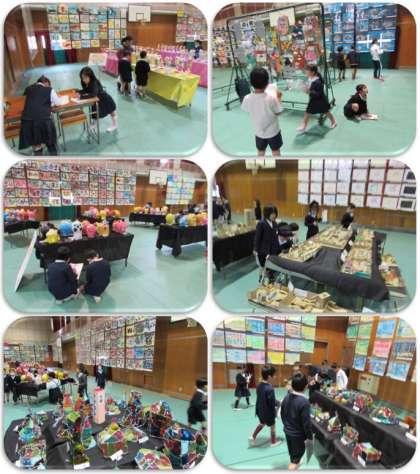 本日の1・2・3時間目、作品展の相互鑑賞を行いました。子どもたちは、各学年の作品を見ながら、いいな、と思うところ、すごいな、と思うところなどをカードに書いていきました。