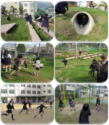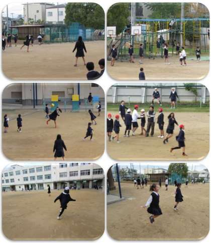午前中、運動場の状態が悪く、外で遊ぶことができませんでしたが、水たまりに土を入れるなどして、昼休みには使用可となりました。「運動場が使える!」と知って、子どもたちが飛び出していきました。