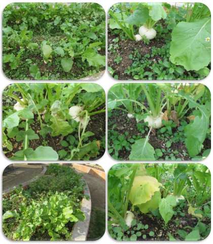 千本小学校では、『なにわの伝統野菜』の栽培を行っています。2年生が育てているのが『天王寺かぶら』です。学習園では、かぶらがたくさんできています。収穫が楽しみです。