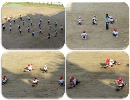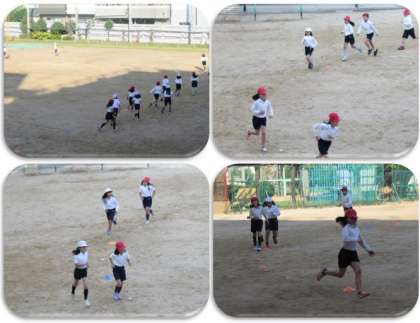 3年生の体育です。10分間で何周走れるか、チャレンジしました。「10周走った!」という子もいました。
