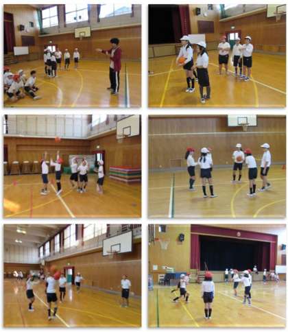 5年生の体育の様子です。今日はバスケットボールの3人対3人のゲームをしました。シュートが入るか、相手にボールを取られたら、攻守交代です。