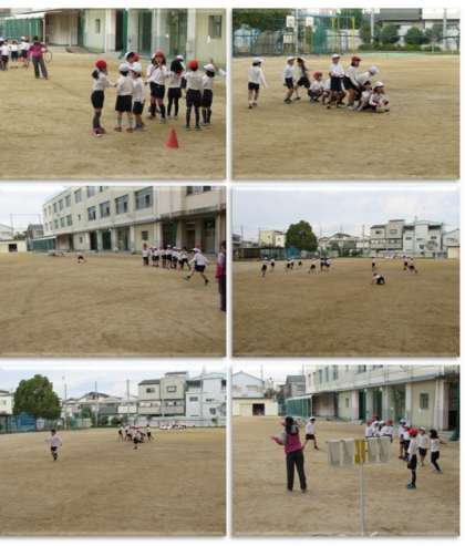 2年生の体育の様子です。キックベースをしています。体力がつき、遠くまで蹴り飛ばせるようになってきました。
