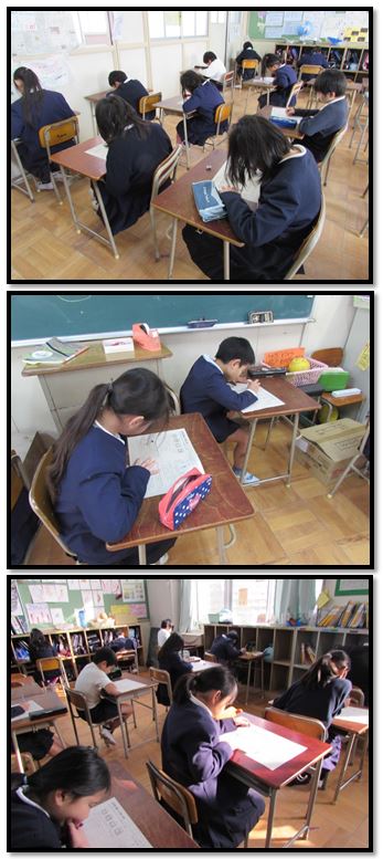4年生の理科のテストです。『もののあたたまり方』のテストを行っています。実験したことを思い出し、設問に答えていきました。