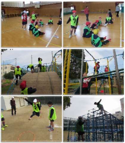 ハンカチ落としの次に、運動場に出て、班遊びをしました。今日は、遊具遊び、双子山遊び、フラフープを使ってのケンケンパをしました。