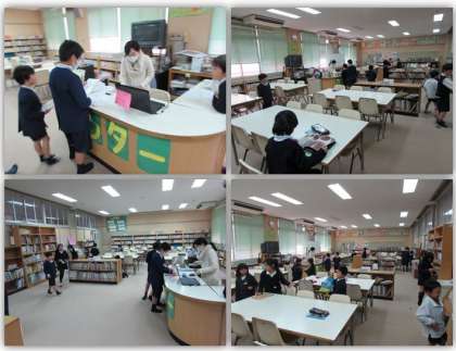 千本小学校では、毎週火曜日、図書館ボランティアの方に来ていただき、終日学校図書館の開放を行っています。今日は雨で外遊びができないこともあって、大勢の子どもたちが休み時間に図書館に来ています。