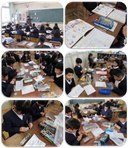 3年生の理科の学習です。電気の回路を作り、間にいろいろなものをはさんで、何が電気を通すのか調べました。