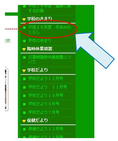 ホームページに『平成28年度 冬休みのくらし』をあげました。お読みいただき、楽しく安全に冬休みを過ごせるよう、ご家庭でもお話ください。