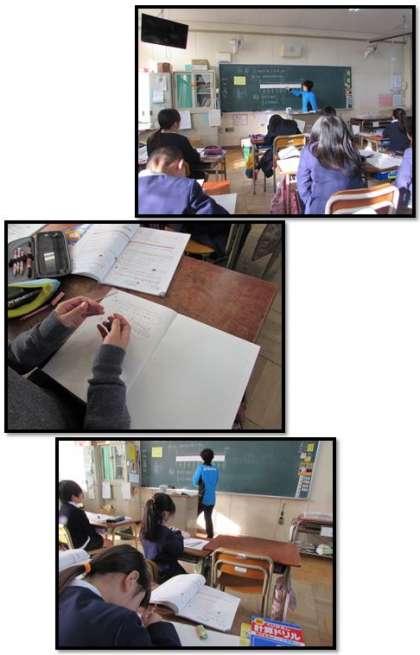 3年生の算数の学習です。今日は、1より大きい分数の表し方を考えました。