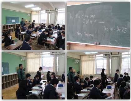 外国語学習 公開日 2016/12/20 更新日 2016/12/20 6年生 12月20日(火) 6年生の外国語学習です。Alvi先生と、『I get up〜』という言い方の学習をしました。 いいね(0)