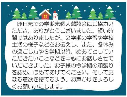 学期末個人懇談会、ありがとうございました