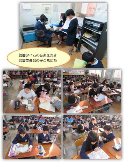 水曜日の朝は、読書タイムから始まります。画像2・3段目は、静かに読書に集中する3年生の様子です。