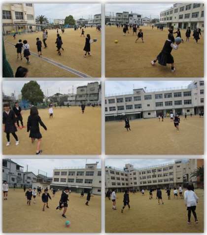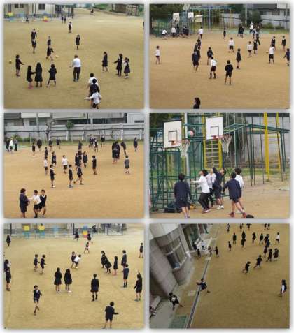 休み時間になり、子どもたちが運動場で元気に遊んでいます。