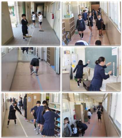 3時間目、全校一斉の大掃除です。明日から始まる学校生活に、気持ちよくのぞめるよう、一生懸命に掃除をしました。