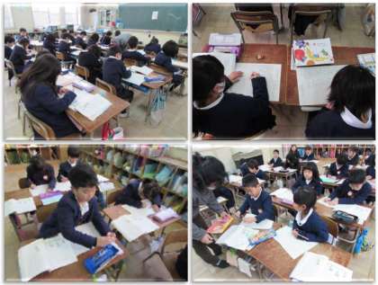 1月12日(木) 1年生の国語の学習の様子です。「みみずのたいそう」の視写を行いました。
