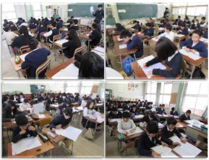 画像は、5年生が国語の学力経年調査に取り組んでいるところです。