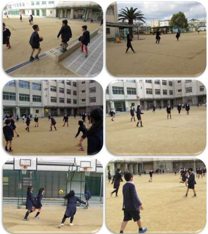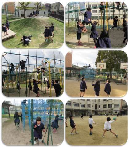 清掃終了後、お昼休みになります。子どもたちが、運動場に出て、元気に遊んでいます。