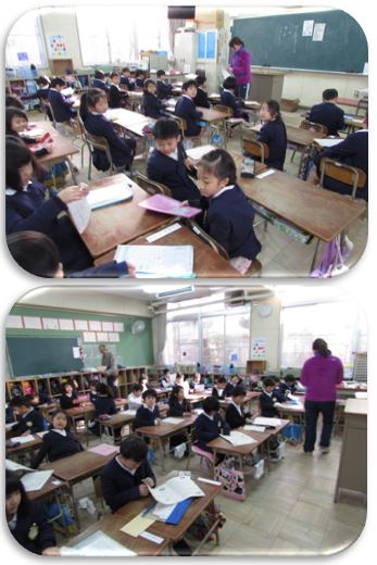 本日は配布物がたくさんありました。1年生も、きちんと後ろの子にプリントを渡しています。