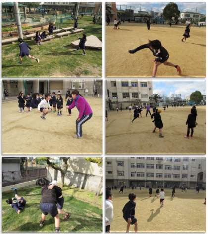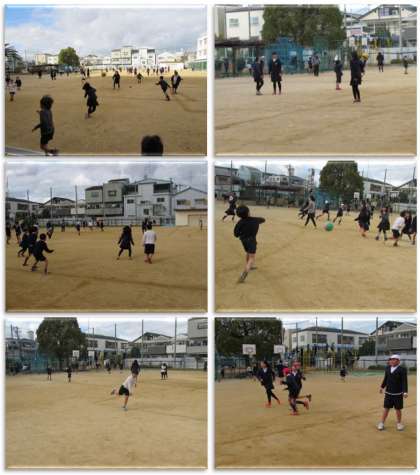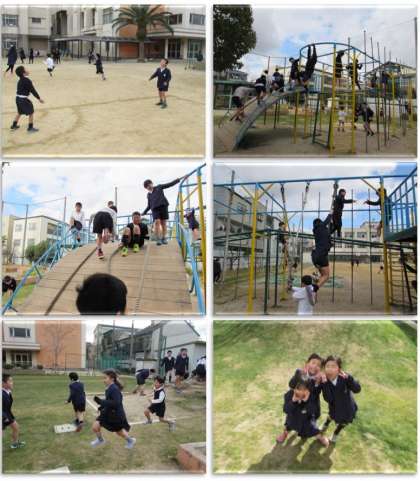 寒さに負けず、子どもたちが運動場で元気に遊んでいます。