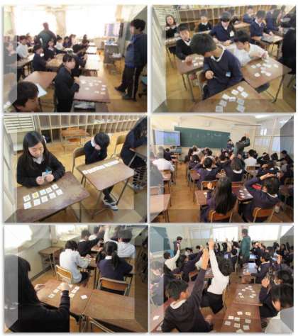 5年生の外国語学習です。Alvi先生が英語でいう教科を、日本語のカードから探し出すゲームをしています。