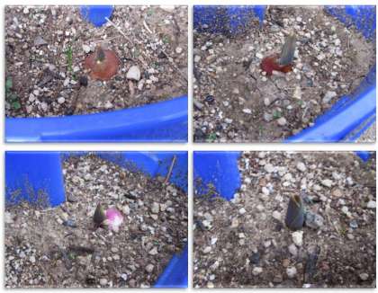 画像は、1年生が育てているチューリップです。小さな芽が、冷たい北風に吹かれ、じっと耐えているようにみえます。