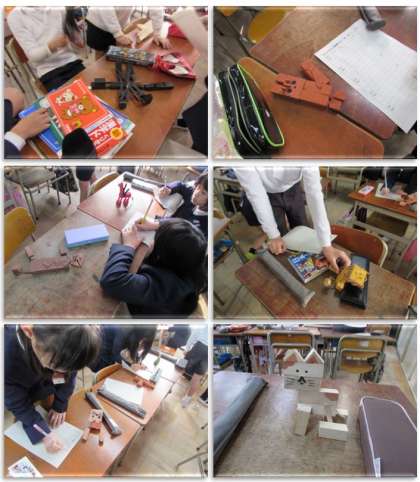 4年生の図画工作の学習です。『トントンつないで』を相互鑑賞し、友達の作品のいいな、と思うところや、工夫しているな、と思うところをカードに書いていきました。
