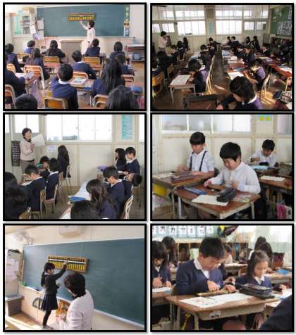 本日、3年生は講師の方にお越しいただき、2回目のそろばん教室を行いました。本日の学習は、「3+9」や「11−2」など、10を入れて多すぎる1を引く、10を引いてとりすぎた8をいれる、などの学習や、1万の位までのたし算、ひき算などをしました。