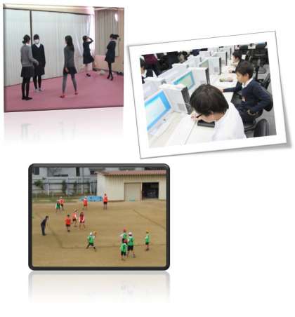 画像は、ダンスクラブ、パソコン・まんがクラブ、スポーツクラブの活動の様子です。