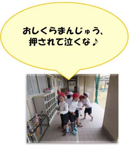 2時間目、1年生の体育です。体操服に着替えて廊下に出ると、寒さにぶるっとふるえるほどでした。1年生の子どもたちは体を寄せ合って、おしくらまんじゅうをして、体を温めようとしています。