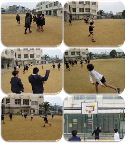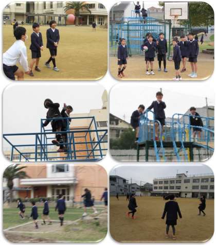 今にも降り出しそうな空でしたが、お昼休みまではなんとか運動場で遊ぶことができました。子どもたちが、楽しく遊んでいます。