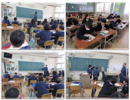 本日の5時限目、成南中学校から4人の先生にお越しいただき、6年生への出前授業を行っていただきました。数学の先生お2人と、体育、理科の先生方です。6年生の子どもたちは、中学校の先生に教えていただく授業を楽しみに、そしてちょっぴり緊張もしながら受けました。今回の取り組みは、小学校から中学校へとスムーズに進めるようにとの考えからです。2月6日(月)には成南中学校の説明会・クラブ見学会を行います。