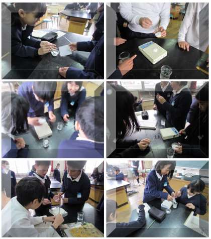 5年生の理科の学習です。水の量を変えて、食塩の溶ける量を調べました。水の量が2倍になると、溶ける食塩の量も2倍になることが確かめられました。