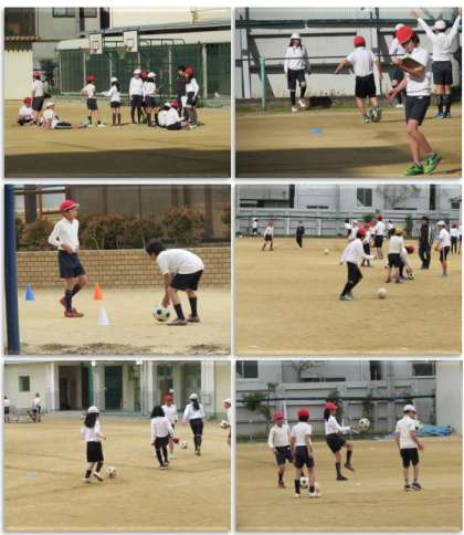 1月24日(火) 5年生の体育の様子です。運動場で、サッカーの練習に取り組んでいます。