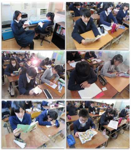 画像左上は、読書タイムの音楽を流す図書委員です。