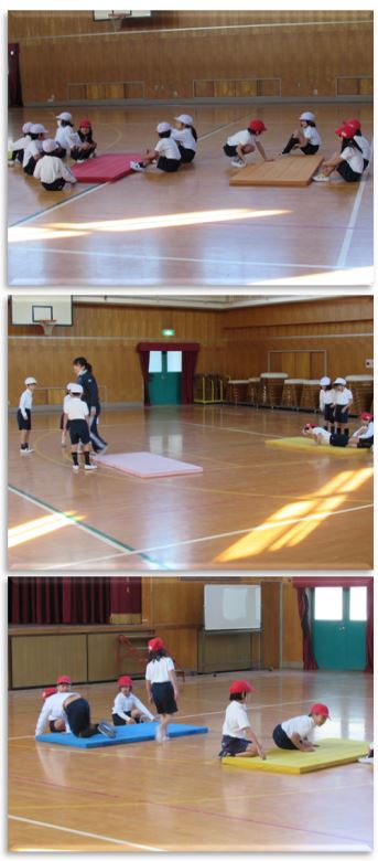 1月25日(水) 体育館では、マット運動の準備を行っています。