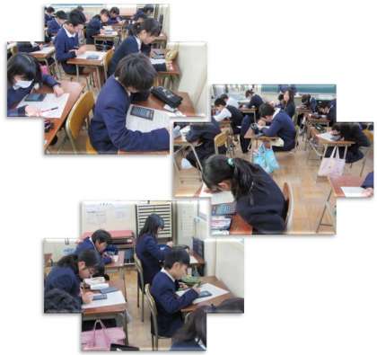 6年生が算数「資料の特ちょうを調べよう[資料の調べ方]」のテストに取り組んでいます。柱状グラフを描いたり、平均値を求める設問がありました。