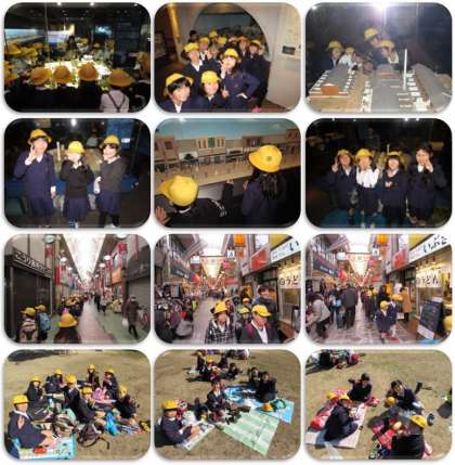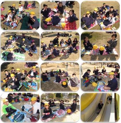 くらしの今昔館を出て、天神橋筋商店街を通り、扇町公園に行ってお昼ご飯を食べました。予想とは違い、日差しが暖かく感じられました。昼食後、公園の遊具(すべり台)で、楽しく遊びました。