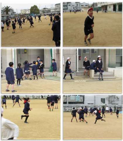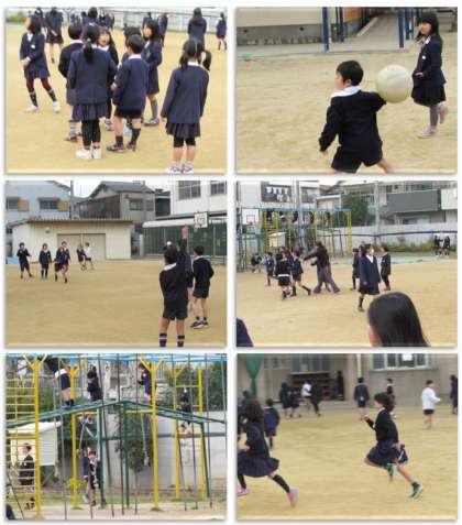 休み時間の運動場の様子です。子どもたちが元気に遊んでいます。