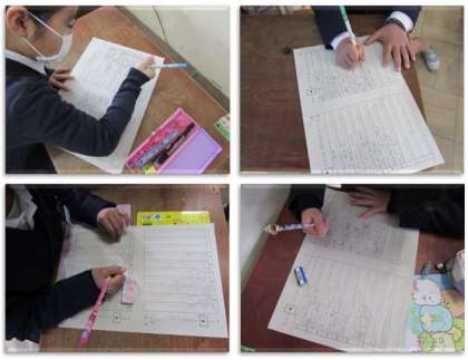 2年生が漢字テストに取り組んでいます。一画ずつ、正しく書きましょう。