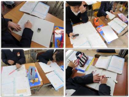 4年生の算数の学習です。小数のわり算で、あまりの求め方を学習しています。