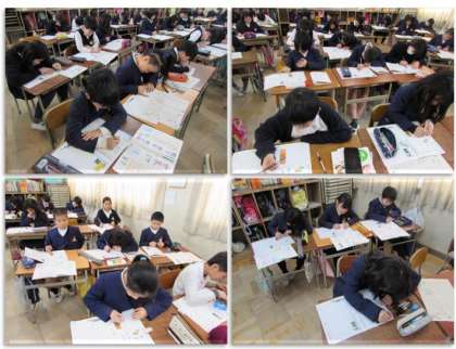 2月3日(金) 4年生の硬筆書写の学習です。漢字とかなの大きさのバランスを考えながら、書きました。