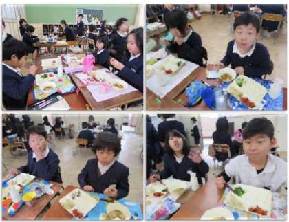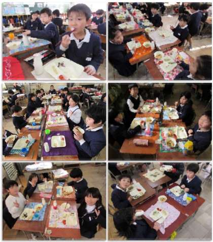 2年生の給食の様子です。自分たちが育てた天王寺かぶらを4年生が調理してくれました。とてもおいしく漬かっていました。自分たちが次に4年生になった時には、2年生のかぶをおいしく漬けるよ、と張り切っていました。