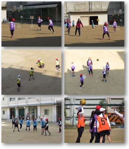 2月6日(月) 4年生の体育の学習です。ポートボールの試合をしています。