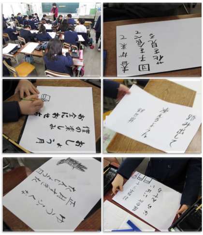 2月7日(火) 5年生の国語の学習です。俳句を作り、毛筆で画用紙に書いていきました。
