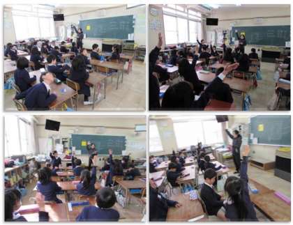 2月9日(木)、1年生は、保育所・幼稚園の子どもたちとの遊び交流会を行います。画像は、その役割分担を決めているところです。