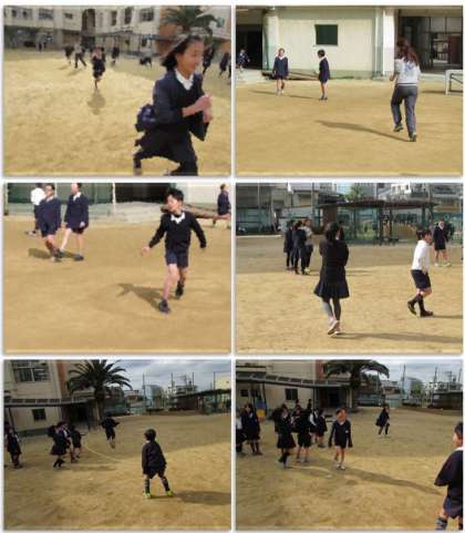 お昼の清掃が終わって、子どもたちが運動場に飛び出してきました。元気いっぱい、遊んでいます。