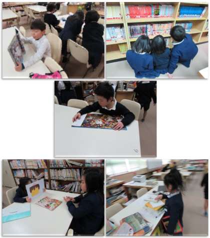 2月7日(火) 2年生が学校図書館に来ました。皆、読書を楽しんでいます。