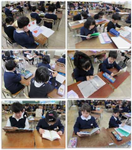 水曜日の朝、読書タイムから始まります。子どもたちは自分の選んだ本を1冊、集中して読んでいます。