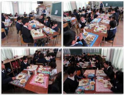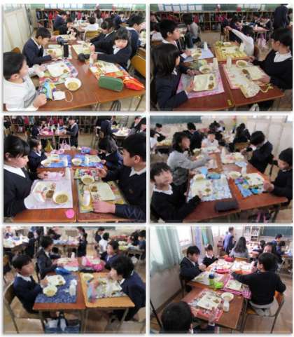 本日、1年生と6年生の交流給食『なかよし給食』を行いました。6年生の半数が1年生の教室へ、また1年生も半数が6年生の教室へ行き、給食を食べました。とても仲良しの6年生と1年生、楽しい給食になりました。