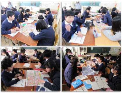 6年生は今週、調理実習を行います。お弁当作りです。今日はちらしを見ながら、どんな材料でお弁当を作ろうか、相談をしています。